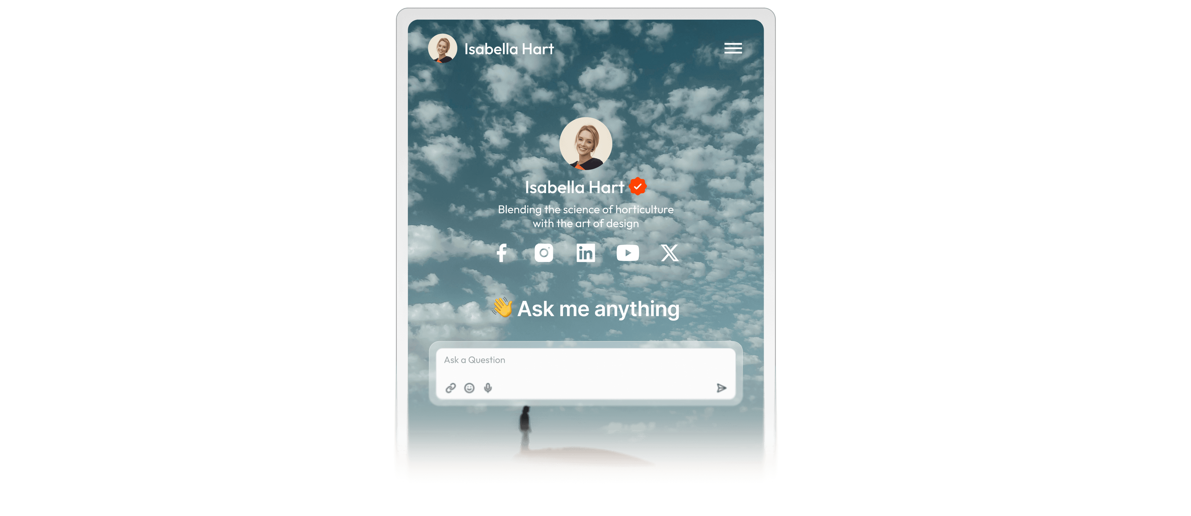 Your AI twin engages every visitor, recommends your best content, and keeps them talking — converting 3x longer than any static link page.
